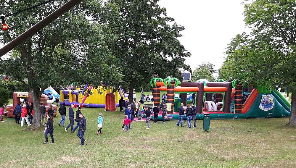 Nur der kurze Regenschauer am Samstagmittag führte kurzzeitig zum „Stillstand“ bei den Hüpfburgen.