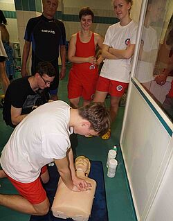 Ebenfalls wurden allen Interessierten die verschiedenen Schwimmstile gezeigt sowie umfassend über Reanimation informiert.